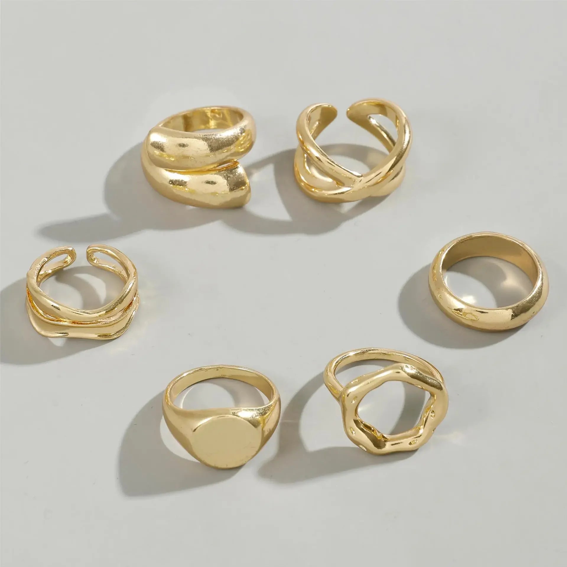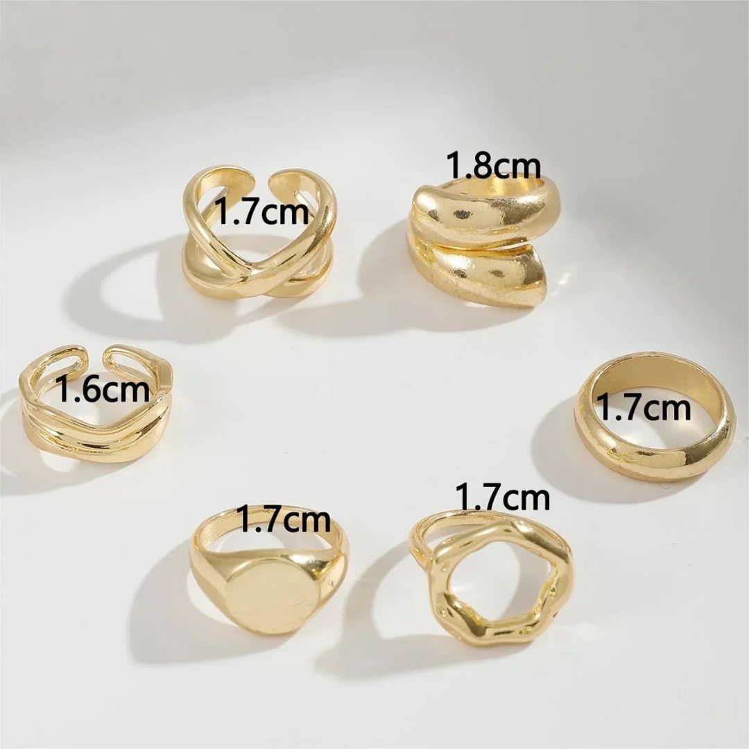 Transforme suas mãos com este kit de 6 anéis dourados! Versáteis, modernos e perfeitos para composições estilosas em todos os dedos!✨