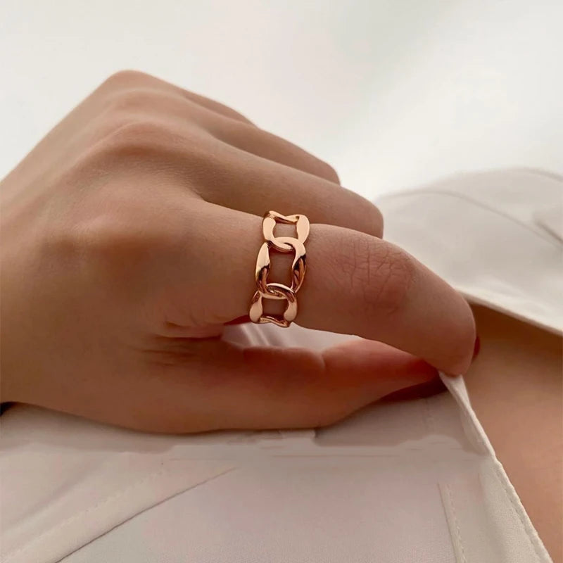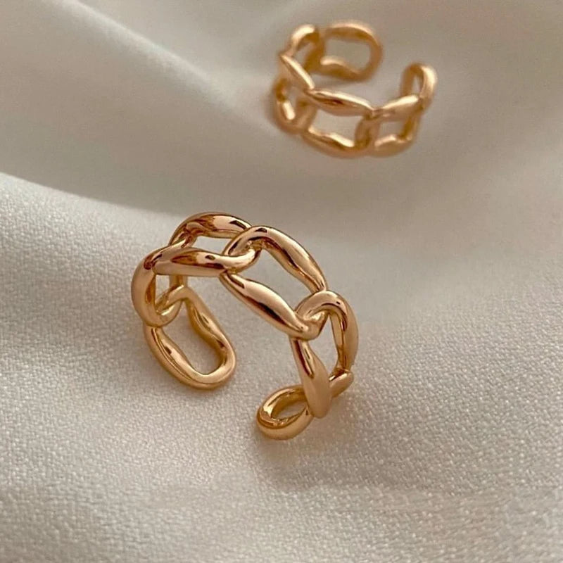 O Anel Elo transmite uma sensação de força e conexão garantindo ao look aquele brilho de poder e feminilidade. Design inspirado em elos de corrente, é banhado a ouro 18K, com acabamento polido que reflete a luz de forma sofisticada, e possui detalhes vazados que trazem leveza e modernidade ao look.