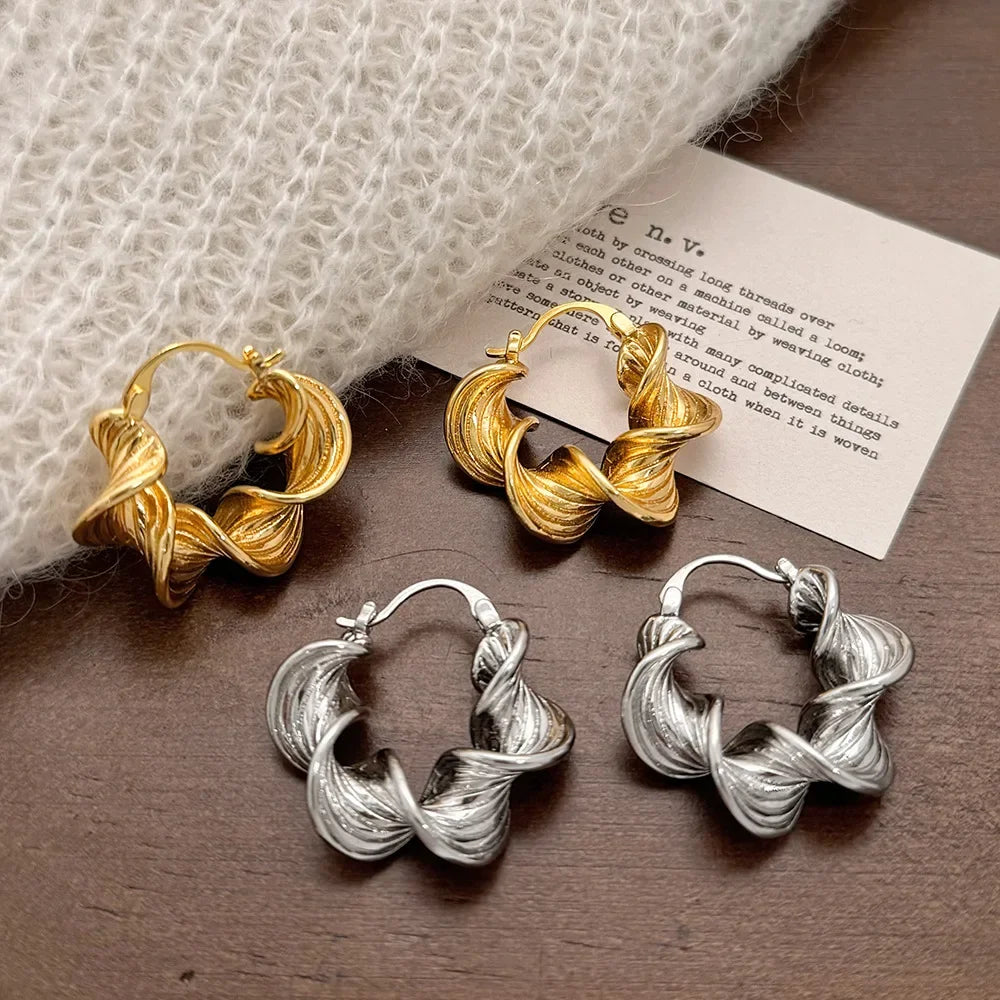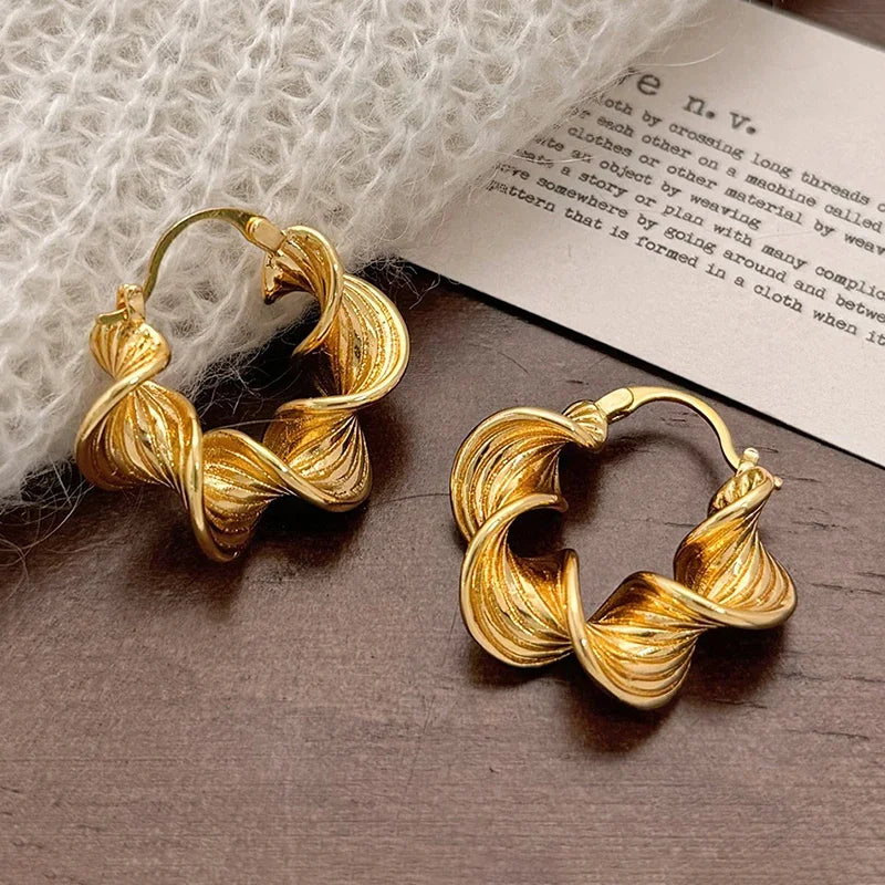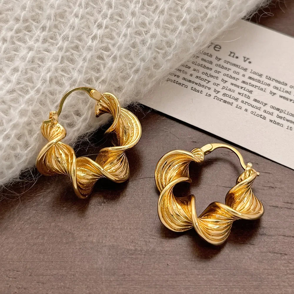 ✅ Design moderno torcido espiral banhado a ouro 18K ou prata 925