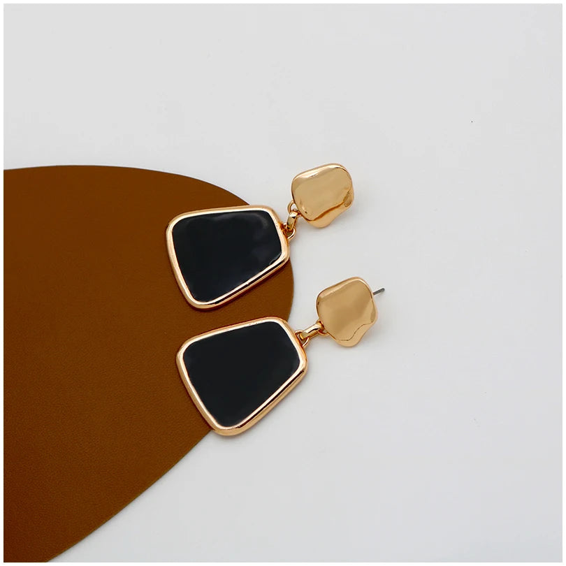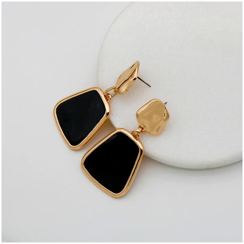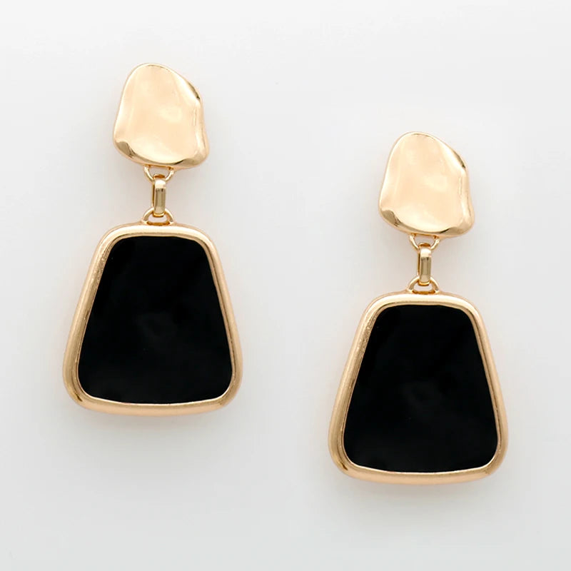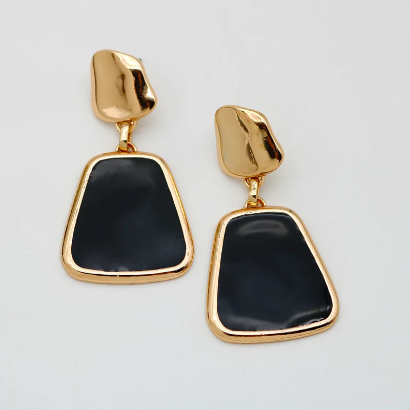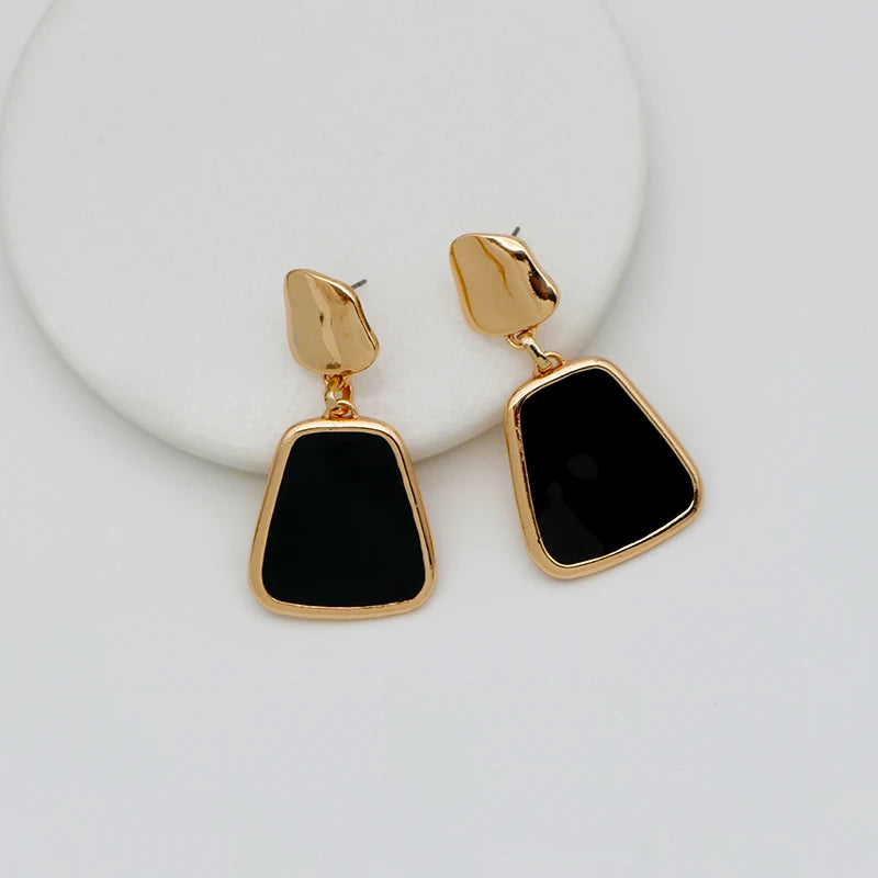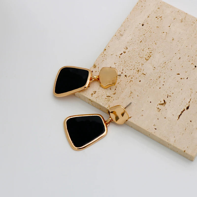 O Brinco Eloá é ideal para quem busca um acessório charmoso, mas com um ar contemporâneo e minimalista. Seu design geométrico contrasta entre o dourado e o preto profundo adicionando um toque artístico e moderno à peça.