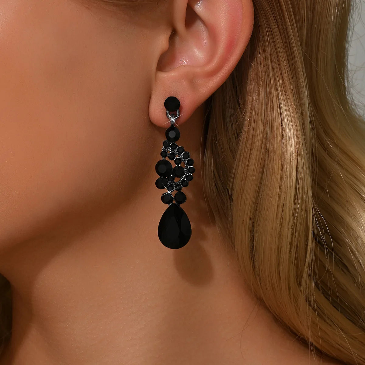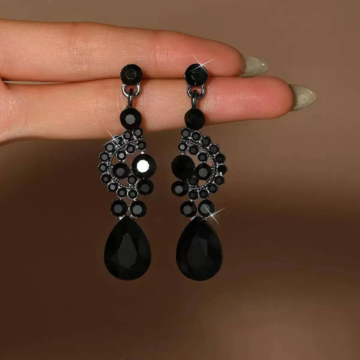 O Brinco Gisele transmite um toque de mistério e glamour com suas pedras negras e brilhantes que criam um visual marcante.