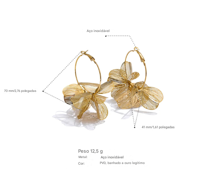 O Brinco Veneza é perfeito para quem ama peças autênticas que equilibram delicadeza e sofisticação. Seu design floral banhado a ouro traz um toque de luz ao rosto realçando a beleza da mulher. Resistente e feito para acompanhar você em todos os momentos.