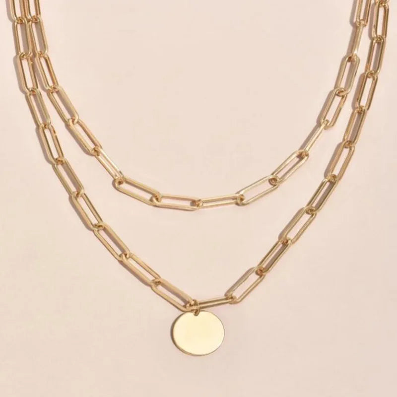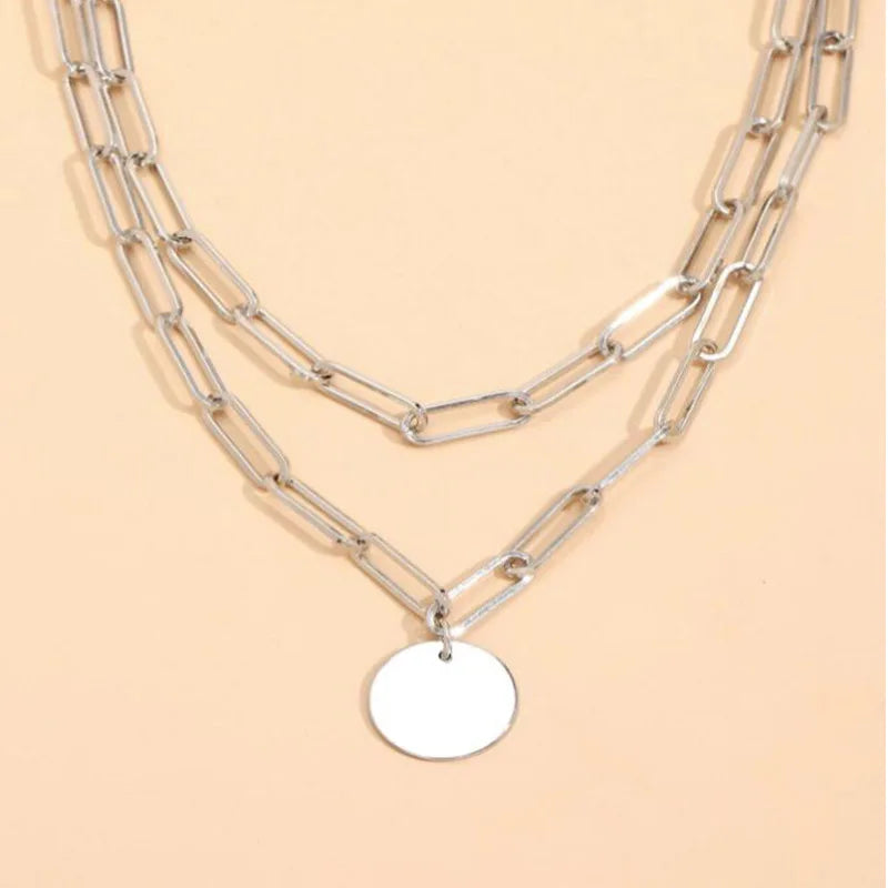 Destaque-se com este Colar feminino duplo de corrente dourado ou prata com pingente. ✨ Deixa seu look mais moderno e elegante com o design em camadas. 💛 Feito com material de alta qualidade, hipoalergênico e resistente. Um must-have no seu visual! 🎀