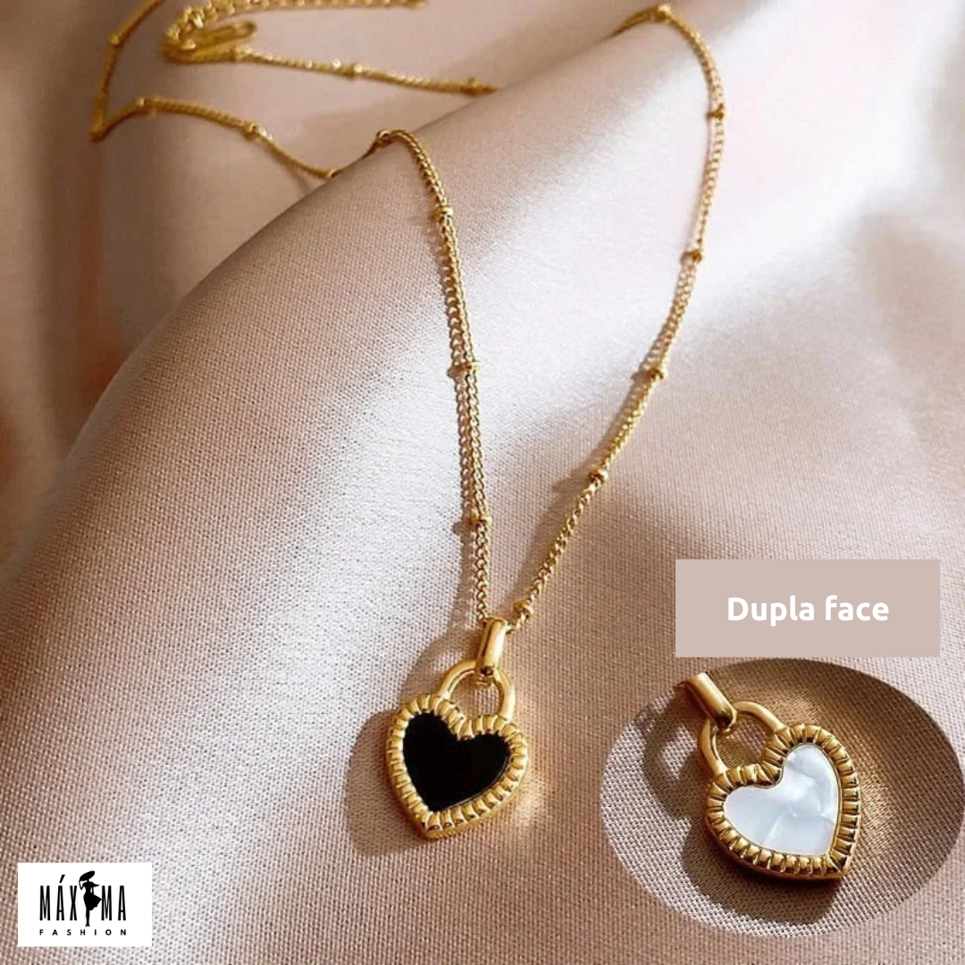 O pingente de coração é dupla face, permitindo que você use tanto o lado preto como o branco, de acordo com o humor do dia, trazendo mais versatilidade e elegância ao seu look. 🖤